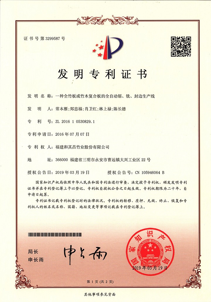 公司占地面積329畝,旗下有7家全資子公司,擁有業內先進的竹板材熱壓機及配套生產線,并與國際竹藤中心、中國林科院、福建農林大學等科研院建立產、學、研合作關系?,F已擁有專利技術55項,其中發明專利13項。30年的行業深耕,和其昌品牌已進入全球核心供應鏈,享譽海內外眾多市場,合作客戶有全球頭部品牌馬士基、TRITON、TEX、FLORENS、HMM、長榮、陽明、萬海、UES、SEACO、廈門航空、金牌櫥柜、金龍客車、福田客車、中通客車、中南建筑、中建三局等,通過了國際質量管理體系認證、ISO9001國際質量管理體系認證等資質認證。
